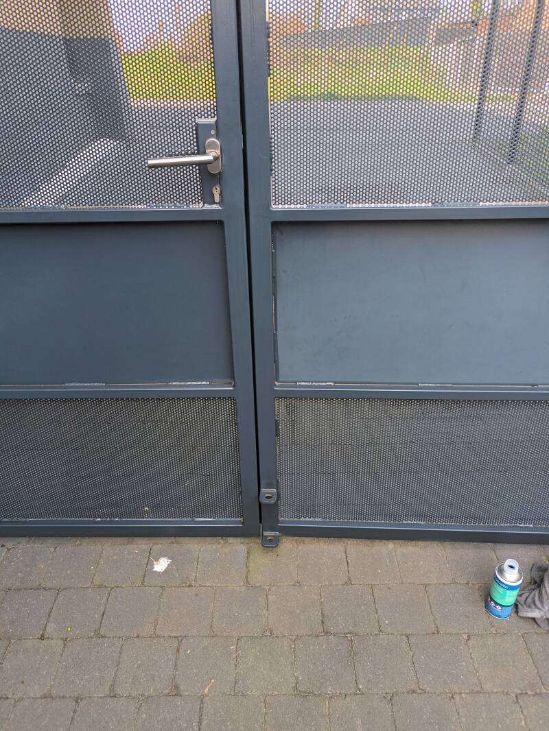 Lakwerk terug naar oorspronkelijke kleur brengen, u ziet het verschil van paneel in de poort.