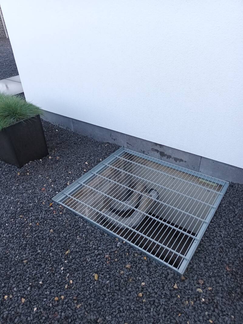 Keldergat afgedicht met dezelfde constructie als de omheining, voor een strakke look.