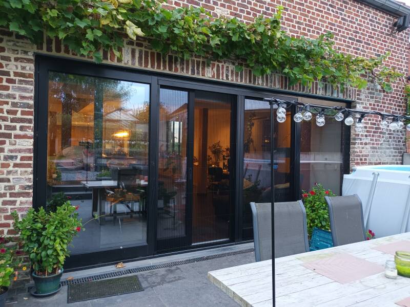 Vliegenschuifraam. Geïntegreerd in ral kleur